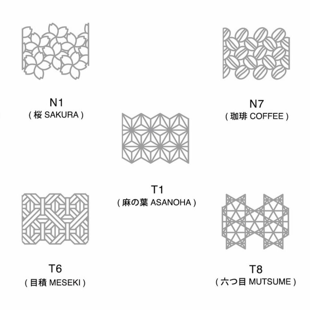 ・デザイン/麻の葉・桜・珈琲・目積・六つ目