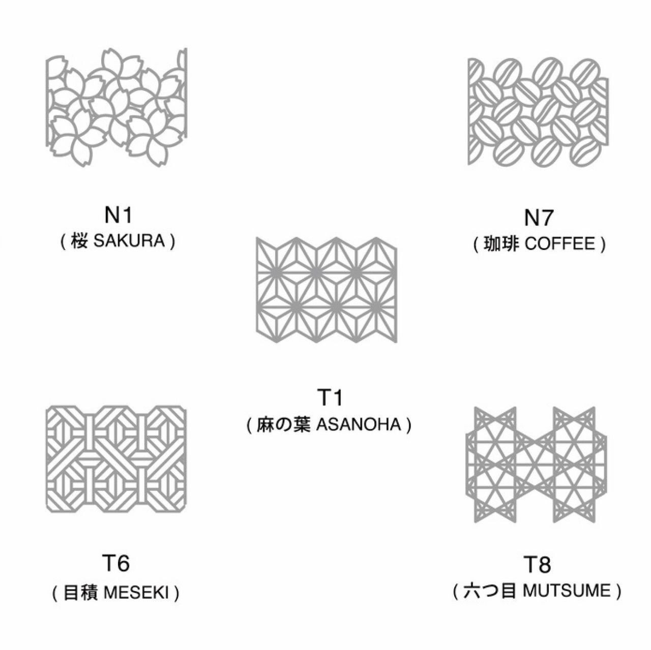 ・デザイン/麻の葉・桜・珈琲・目積・六つ目